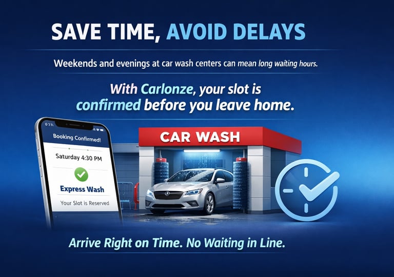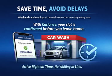 Weekends and evenings at car wash centers can mean long waiting hours. Carlonze ensures your slot is confirmed before you leave home, so your car gets cleaned exactly when planned